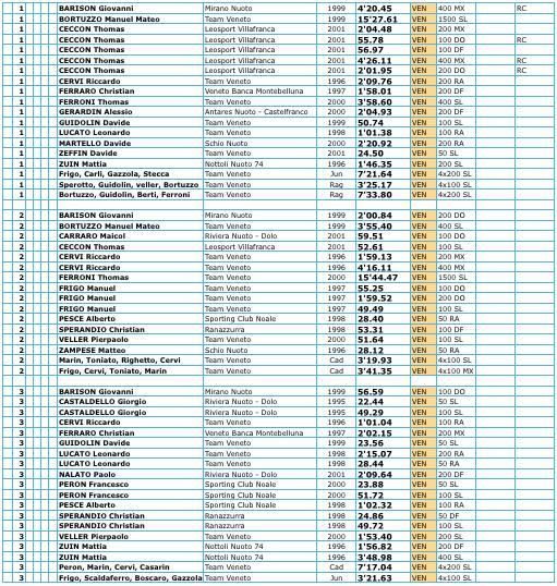 Tutte le medaglie venete del settore maschile