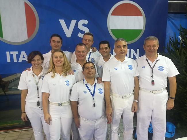 Foto di gruppo degli arbitri con le nostre azzurre