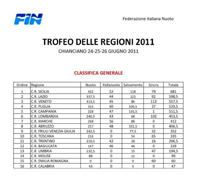 La classifica finale, Veneto al terzo posto!!!