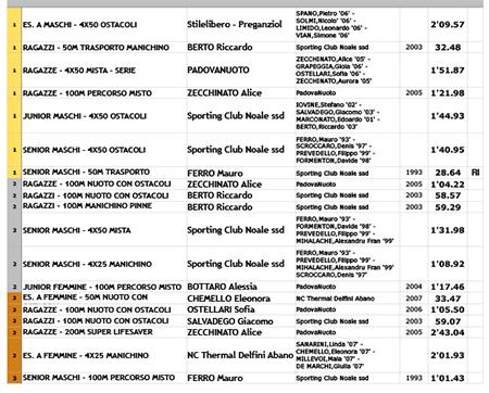 La squadra noalese è stata rappresentata da ben 20 atleti delle categorie ragazzi juniores cadetti e senior e ha fatto scendere in vasca sette staffette, ottenendo ben sei medaglie individuali e quattro medaglie di staffetta.