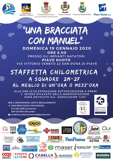 S'intitola "Una bracciata con Manuel" ed è la staffetta a nuoto in programma domenica 19 gennaio a San Donà. Teatro dell'evento la piscina comunale gestita dalla Piave Nuoto. L'iniziativa è stata promossa per ricordare Manuel Paulon, giovanissima promessa della Piave Nuoto e originario di Meolo, scomparso lo scorso giugno in un tragico incidente stradale.